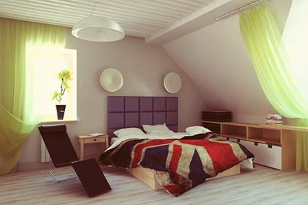 Дизайн мансардной спальни, как правило, выглядит необычно и оригинально, и в первую очередь он обязан этим нестандартной форме кровли.